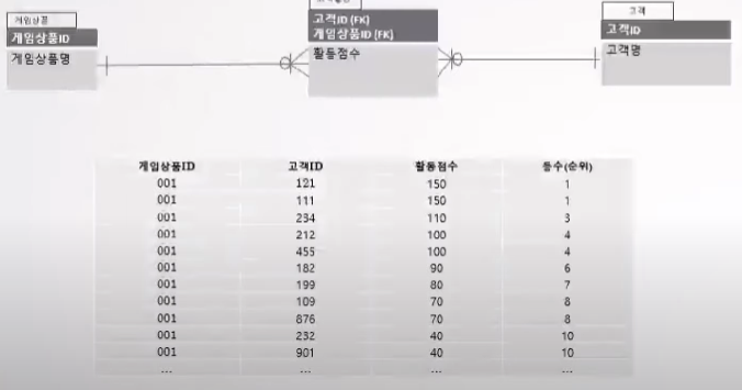 3. 아래 데이터 모델에서 활동점수가 높은 고객을 개인상품ID별로 10등까지 선별하여 사은행사를 진행하려고 한다. 다음 SQL중 가장 적절한것은? (단, 활동점수가 동일한 고객은 동일 등수로 한다. )