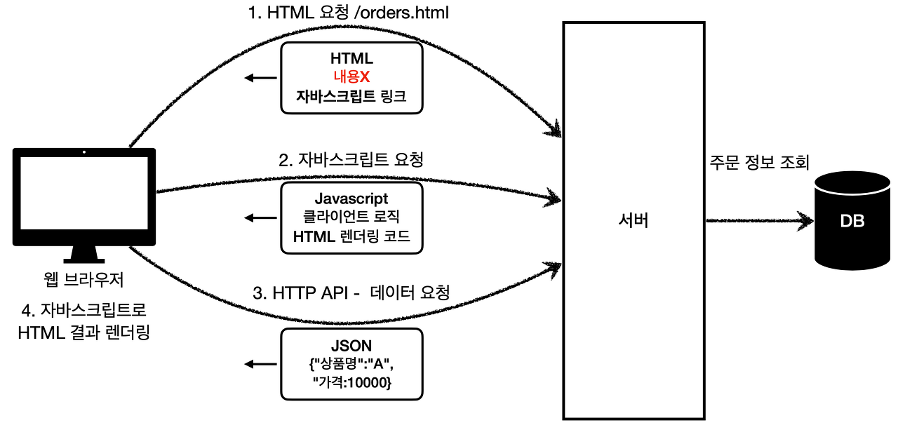 - SSR을 사용하더라도 자바스크립트를 사용해서 화면 일부를 동적으로 변경 가능