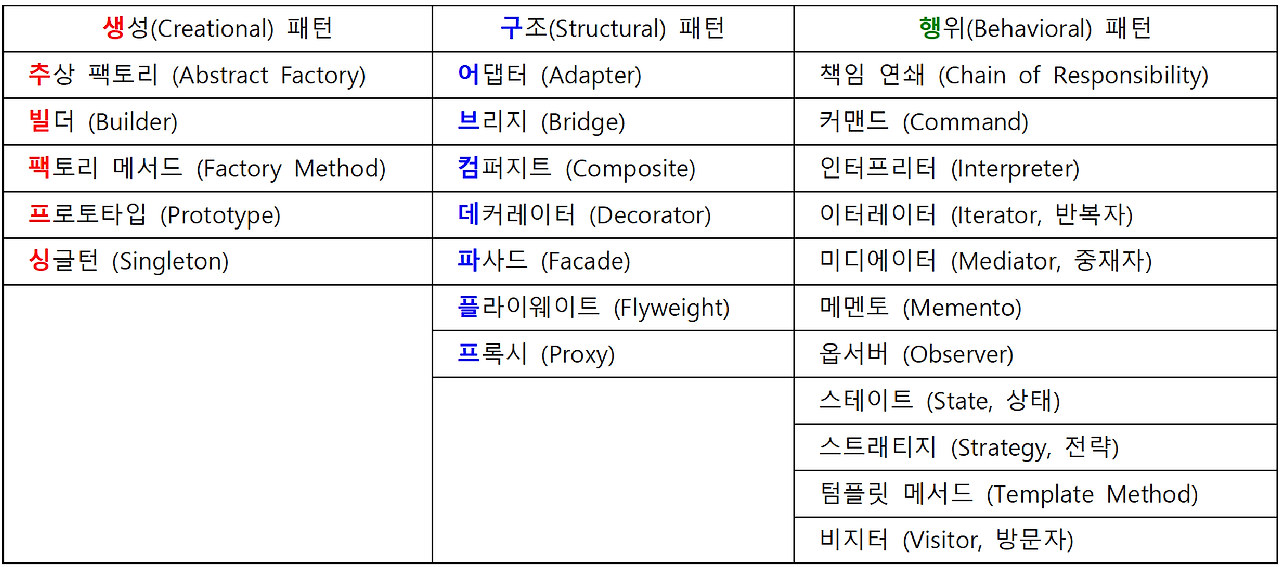 3. GoF(Gangs of Four) 디자인 패턴에서 생성(Creational) 패턴에 해당하는 것은?