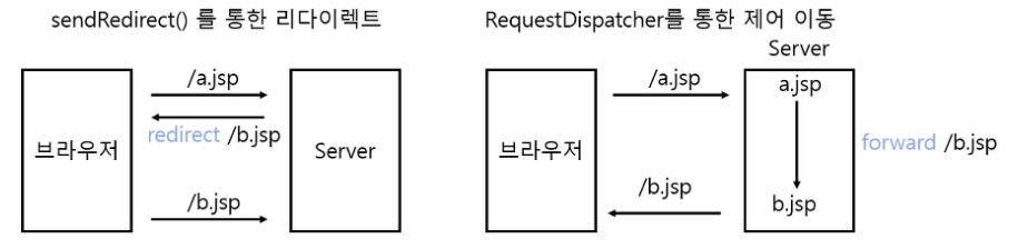 - 클라이언트로부터 최초에 들어온 요청을 JSP/Servlet 내에서 원하는 자원으로 요청을 넘기는(보내는) 역할을 수행하거나, 특정 자원에 처리를 요청하고 처리 결과를 얻어오는 기능을 수행하는 클래스이다.