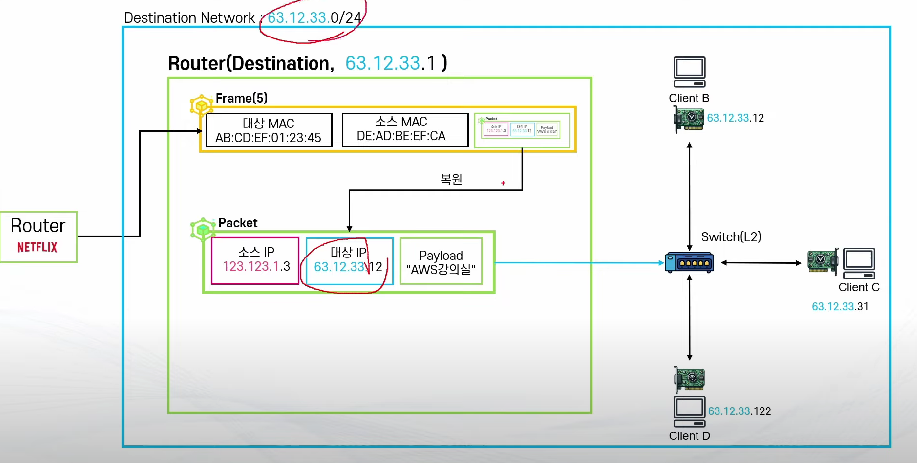 - A, B, C, D는 네트워크 주소(A,B,C) + 호스트 주소 표시(D)