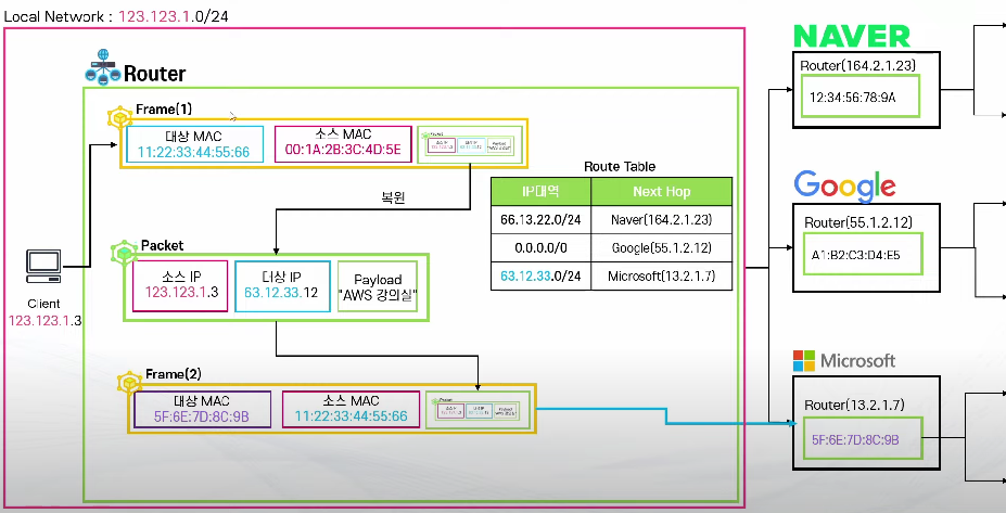 - ip 대상이 로컬이 아닌 것을 식별 : 네트워크 주소가 다름